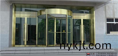 自动旋转门由固定框架、帽头、贴地包边、边墙玻璃组成旋转门的外框,中间的展台和门扇为旋转部分。自动旋转门由程序逻辑控制器(PLC)、计算机中心处理装置(CPU)和调速电路等控制器件所组成的微电脑控制系统进行控制,门的运行完全自动门、特殊情况下才进行手动操作。