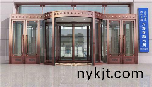 自动旋转门由固定框架、帽头、贴地包边、边墙玻璃组成旋转门的外框,中间的展台和门扇为旋转部分。自动旋转门由程序逻辑控制器(PLC)、计算机中心处理装置(CPU)和调速电路等控制器件所组成的微电脑控制系统进行控制,门的运行完全自动门、特殊情况下才进行手动操作。